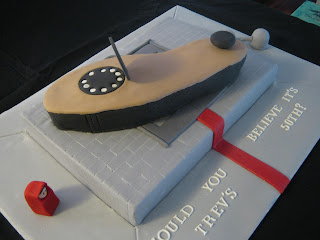 I adored making this cake. It was quite big in the end. The bottom cake was a 10inch square turned into a 15 inch by 10 inch rectangle. The shoe phone was a 8 inch square but I finished up probably only using half of it.